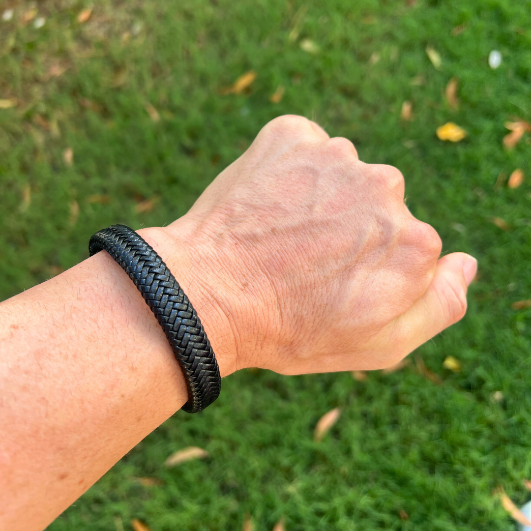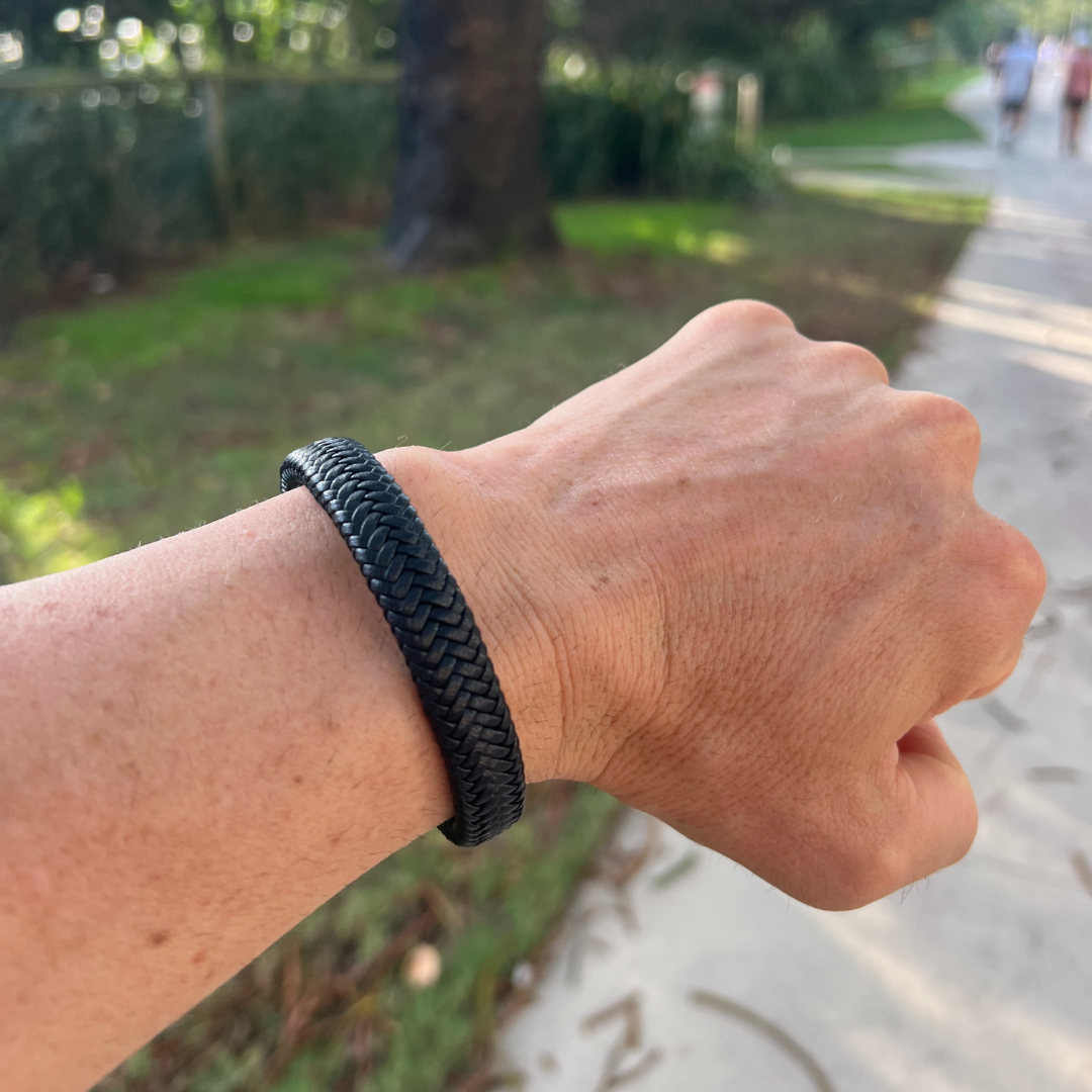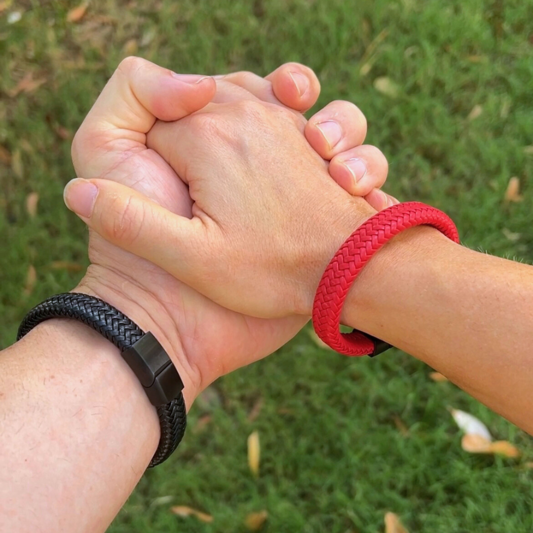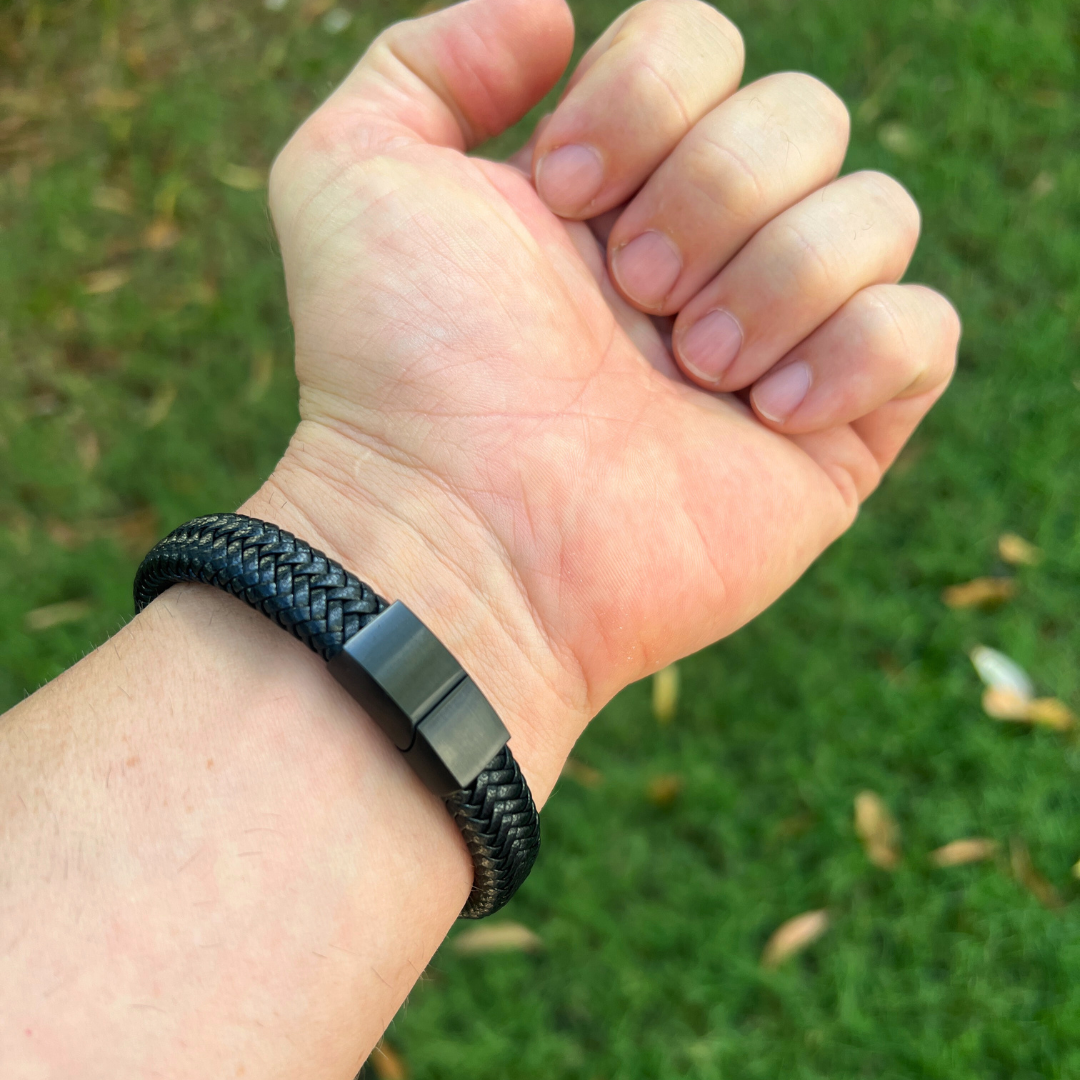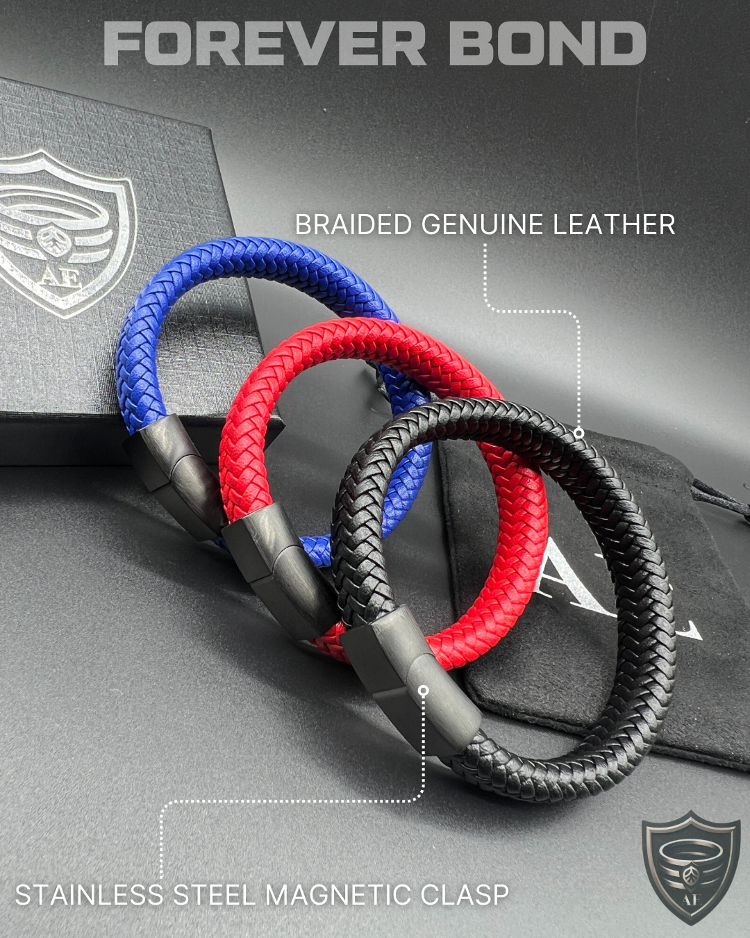 Our Forever Bond bracelet features a meticulously braided leather band, symbolising the intertwining of shared experiences and unwavering support. Each strand represents a unique journey, intricately woven together to create a bond that withstands the test of time. Finished with a sleek stainless steel magnetic clasp, this bracelet ensures both security and sophistication in every wear.